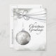 A frente deste cartão é prata com flocos de neve, fitas e as palavras: Cartões de natal. No verso diz: Que seja esta época de Natal e o próximo Ano Novo, encham seus corações de calor, amor, riso, fé e esperança. É uma carta sofisticada desejando aos seus entes queridos todas as bênçãos do mundo.