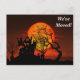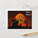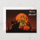 Este design apresenta uma silhueta de uma casa antiga. Em uma colina com árvores e uma lua laranja. Com um cemitério abaixo da casa. Este cartão postal seria ótimo para qualquer pessoa que tenha ou vá se mudar para um novo endereço. Clique no botão Personalizar para adicionar seu próprio texto ou imagens para criar um design único! Seja criativo neste cartão postal