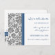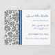 Cartão postal de casamento Grey Blue Damask Save t