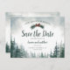 Este cartão de save-the-date de casamento com pinheiro apresenta uma fonte moderna divertida e ricas evergreens aquareladas contra uma página branca. A escolha perfeita para um casamento casual na floresta.