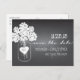 Um lindo pote de pedra cheio de hortênsias brancas decora este adorável cartão postal de chamada para guarda de data de casamento em quadro-negro.