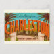 Um cartão postal colorido e vintage de Charleston, cidade da Carolina do Sul, reaproveitado como um novo cartão postal.