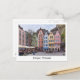 Plaza medieval de Colônia, na Alemanha, mostrando edifícios e restaurantes medievais estreitos e coloridos, com pessoas e turistas locais, sentados ou andando e admirando a visão. O quadro mostra um canto da catedral de Colônia ao fundo e uma antiga fonte no meio da praça.