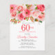 Cartão Postal De Convite 60º Aniversário do Elegante Rosa Floral