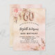 Um fundo rosa dourado, rosado, rosado e roxo, com aspecto metálico. Decorados com ouro rosa e flores, rosas, grama-pampas. Personalize e adicione um nome e detalhes da parte. O número 60 é escrito com uma fonte no estilo do balão.