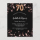 Cartão Postal De Convite 70 aniversário estrelas rosa de ouro negras