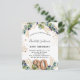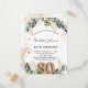 Para uma festa de aniversário 80. Um fundo branco decorado com verde de eucalipto e folhas de ouro. Pontos de brilho falsos do ouro. Personalize e adicione seus nomes e detalhes do casamento. Letras pretas e ouros coloridas. O número 80 é escrito com a fonte do estilo do balão. Traseira: fundo branco e pontos de falso brilho do ouro, design de cartão-postal. Dica: Se você não quiser que pareça um cartão postal, clique em personalizar, vá para o verso e remova o divisor e o carimbo de posto.