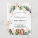 Cartão Postal De Convite 80 de aniversário eucalipto verde glitter elegante