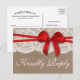 A coleção de casamento de laço vermelho rústico é um design deslumbrante que apresenta um belo efeito de tecido de juta rústico ao fundo com uma barra de renda branca vintage romântica e um deslumbrante laço vermelho.