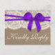 Cartão Postal De Convite A Coleção de Casamento do Laço Roxo Rústico RSVP