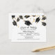 Cartão postal de festa de formatura com bonés de formatura pretos. Cor de escola neutra! Personalizado com detalhes de festa de formatura na parte frontal e endereço de retorno na parte traseira. Produto muito econômico!