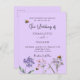 Um fundo violeta. Decorado com abelhas e pintado flores silvestres em violeta e rosa. Personalize e adicione seus nomes e detalhes.