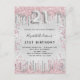 Um convite moderno, na moda e glamouroso para um aniversário de 21 anos. Um fundo de aspecto fino prateado, decorado com pó brilhante de prata rosa e falso. Personalize e adicione o seu nome e detalhes da festa. O número 21 é escrito com uma fonte de estilo balão, script. Fundo: fundo falso prateado, design postal. Dica: Se você não quiser que pareça um cartão postal, clique em personalizar, vá para o verso e remova o divisor e o carimbo de posto.