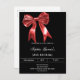 Um fundo preto, decorado com um grande arco vermelho. Personalize e adicione um nome e detalhes da parte.