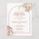 Belas aquarelas de grama das pampas florais e moldura de arco chique enquadram os detalhes da sua primeira comunhão em tipografia terracota elegante. Criado por Thisisnotme©