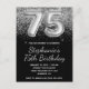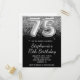 Cartão Postal De Convite Balão preto brilhante prateado brilhante 75.º aniv