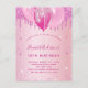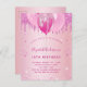 Para uma festa de aniversário feminina. Um fundo rosa pastel com aparência metálica falsa. Decorado com brilho e balões falsos. Personalize e adicione um nome e detalhes da festa. O nome é escrito com um estilo de letra manuscrita