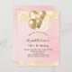 Para um elegante aniversário de 18 anos (ou qualquer idade). Um fundo cor-de-rosa, cintilação do ouro e balões dourados falsos. Personalize e adicione um nome, idade e detalhes da festa. O nome é escrito com um script de estilo manuscrito