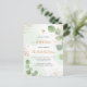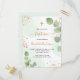 Um fundo verde branco e claro, decorado com eucalipto verde e pó dourado falso. Personalize e o nome e os detalhes da cerimônia. Letras pretas e ouros coloridas. Sexo neutro. Fundo: fundo verde claro, design postal. Dica: Se você não quiser que pareça um cartão postal, clique em personalizar, vá para o verso e remova o divisor e o carimbo de posto.