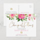 Cartão Postal De Convite Bat Mitzvah Rosa Floral Aquarela Letra Dourada