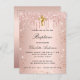 Cartão Postal De Convite Batismo blush rosa dourado glitter glitter menina