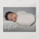Este convite para o Batismo de Foto do Bebê do Script Moderno apresenta uma bela foto horizontal de sangria de cheio e uma arte de batismo escrita à mão e um texto editável mínimo. Clique no botão editar para personalizar este design.