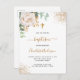 Um fundo branco decorado com verde de eucalipto, uma rosa branca, folhas de ouro e falsas gotas de ouro. Personalize e o nome e os detalhes da cerimônia. Letras pretas e ouros coloridas. Sexo neutro. Traseiro: design postal. Dica: Se você não quiser que pareça um cartão postal, clique em personalizar, vá para o verso e remova o divisor e o carimbo de posto.