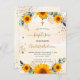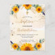 Cartão Postal De Convite Batismo girassol ouro eucalipto