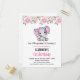 Cartão Postal De Convite Bebê-Elefante Rosa e Fronteira Rosa Aniversário