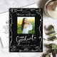 Make sure all your friends and relatives will be able to celebrate your child’s milestone graduation! Send out this quirky, whimsical, simple, modern, personalized photo “Save the Date” postcard for an event to remember. On the front, fun white handwritten script typography and hand drawn graduation icon sketch doodles, along with your custom photo, overlay a dramatic black background. Add the photo of your choice and personalize the custom text with your grad’s name, school, class year and date. Your custom message and return address adorn the back. Matching invites, thank you cards stickers, hand fans and other graduation goodies are also available in this trendy and stylish collection. Guaranteed to add stylish fun to their special occasion!