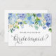 Cartão Postal De Convite Blue Hydrangea e Ivory Rosa Bridesmaid Proposta