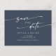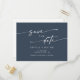Este casamento azul-marinho preto de boho, salvo a data do convite postal é perfeito para um casamento minimalista. A design boêmica moderna azul-escura, silenciosa e moderna, apresenta uma caligrafia rústica simples com um estilo único, mas clássico. Personalize seu cartão postal de data com seus nomes, data do casamento, local e endereço do site do casamento.