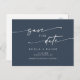 Cartão Postal De Convite Boho Marinho Escuro Azul Casamento Salve a Data