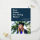 Gown boné, está descendo o Cartão-postal do Convite para Graduação Moderna de Foto Azul. Felicita o FORMANDO! Parabéns sobre seu bem merecido sucesso e celebrá-los com esta bela carta. Todos os textos estão pré-organizados para que você personalize fácil e rapidamente com seus próprios detalhes.