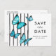 Cartão Postal De Convite Borboletas aquarela azul moderno salvar a data