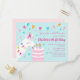Estes convites de festas de 4 anos com cartão postal apresentam um design de lama divertido. O lama está comendo um bolo de aniversário com aspersores e velas de 4 anos. O fundo é uma cor aqua pastel com confete, estrelas e bunting listrado. Personalize esses convites caprichosos com seu próprio texto.