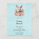 Easter brunch postcard invitation with a watercolor image. A white gray bunny rabbit surrounded by a garland of pink and peach roses. For bunny lovers and Easter themes and birthdays and showers.