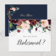 Cartão Postal De Convite burgundy floral, você será meu cartão de Bridesmai