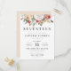 Um design lindo e elegante adequado para uma ampla faixa etária. Este convite apresenta uma bela pintura em aquarela de um buquê floral no topo. Abaixo há a tipografia do convite em letras modernas e elegantes.