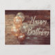 Este cartão postal divertido é uma imagem de balões dourado rosa com um fundo de tijolos. E diz Feliz Aniversário!