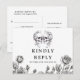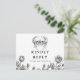 Um conjunto de cartões de confirmação de presença com caveiras florais góticas em tipografia chic. O verso apresenta seus detalhes e um pedido de música de convidado divertido. Projetado por Thisisnotme©