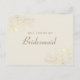Peça às suas damas de honra com estilo com este cartão de proposta elegante com tons de marfim suaves e ilustrações florais douradas delicadas. A fonte de letra romântica combinada com uma mensagem sincera no verso torna-o perfeito para pedidos de festa de casamento vintage, clássicos ou formais.