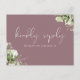 Um cartão de resposta de pedido de música elegante com folhagem floral e tipografia sofisticada em fundo bege. O verso apresenta seus detalhes e um divertido pedido de música para convidados. Criado por Thisisnotme©