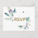 Cartão Postal De Convite Cartão de RSVP de casamento com aquarela de rosa a