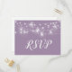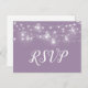 Cartões postais RSVP de casamento impressos personalizados com barato fácil de usar para personalização. Este design rústico apresenta cadeias de luzes brilhantes de cordas e frascos de pedras em um fundo roxo empoeirado. Personalize o modelo com os detalhes da resposta do casamento - incluindo opções de refeição, se necessário - ou personalize o texto a ser usado para qualquer evento. Use as ferramentas de design para escolher qualquer cor de fundo, adicionar fotos e personalizar as fontes e cores do texto para fazer um design único para o seu casamento.