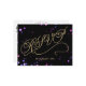 O confete de boque cintilante acende-se em cor-de-rosa translúcida, roxo e azul ao fundo deste fabuloso e glamouroso cartão postal RSVP, com um falso escrevendo de brilho dourado "RSVP" num script de rico. Por favor, note que NÃO é uma folha de ouro real ou um brilho - é um efeito de ouro FAUX! Trabalho de arte personalizada por Colleen Michele.