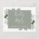 Um elegante cartão verde de RSVP floral verde de aquarela com tipografia quic. O inverso apresenta os seus detalhes e uma solicitação divertida de música de convidado. Projetado por Thisnotme©