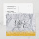 Cartão Postal De Convite Cartão Rsvp de Casamento Script de Mármaco Dourado