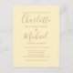 Com nomes de estilo de assinatura, este convite de casamento em cartão postal amarelo botão-de-ouro pode ser personalizado com suas informações em letras douradas elegantes. Projetado por Thisisnotme©