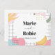O design apresenta um fundo abstrato, vibrante e colorido, que faz uma declaração e dá o tom para uma comemoração viva e alegre. Perfeito para casais que querem adicionar um pouco de diversão e modernidade às suas festividades de casamento. O texto está em fontes limpas e elegantes, o que contrasta bem com o fundo lúdico, fazer o convite fácil de ler enquanto ainda é atraente visualmente.